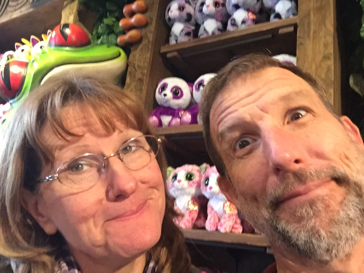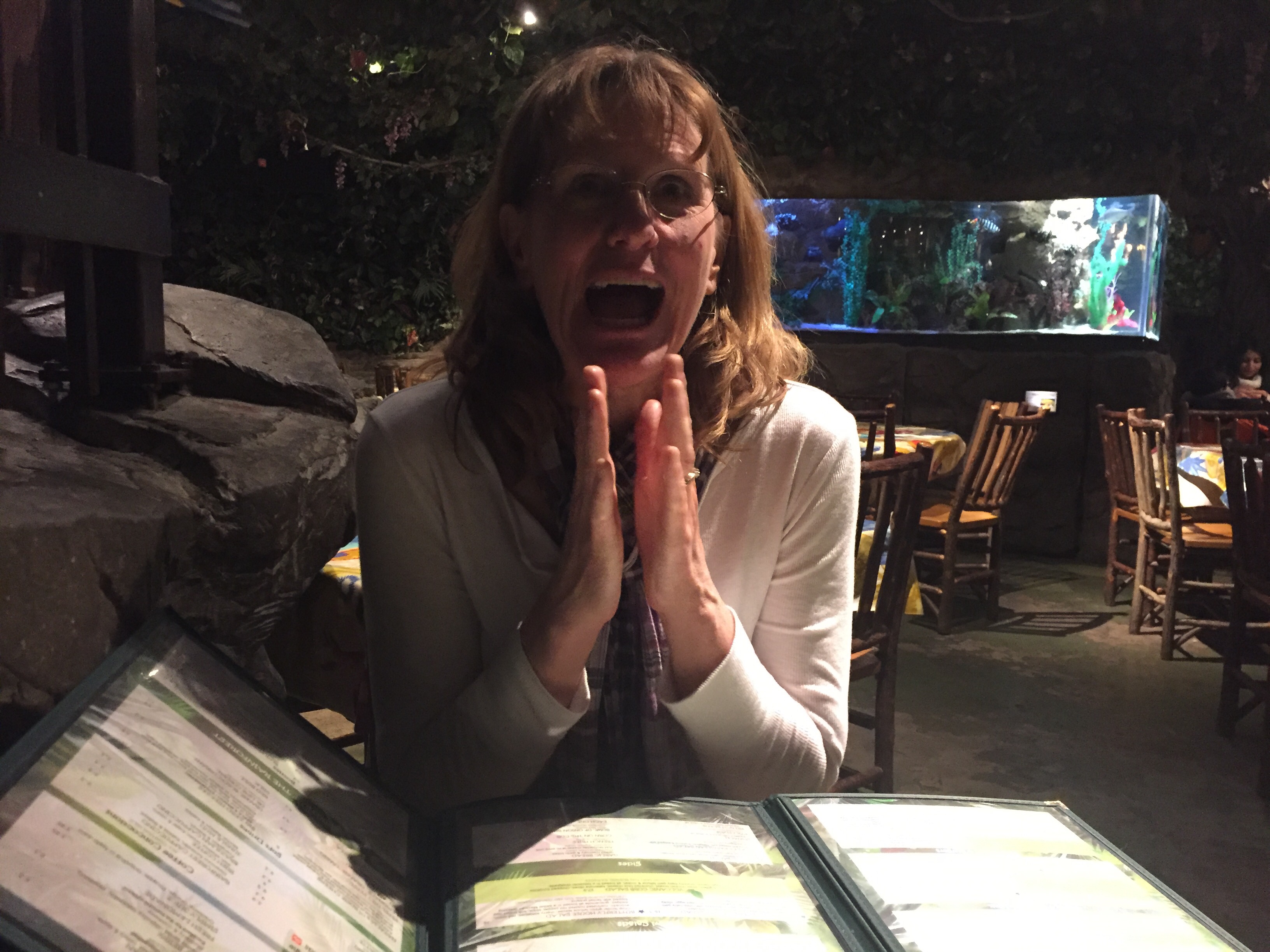 There have been fun meals — even Karen’s first visit to the thunder, lightning, rain and animals of the Rainforest Cafe in London –walks through our past as we visited the places we met and hung-out in, in 1978, incredible theater and concerts.