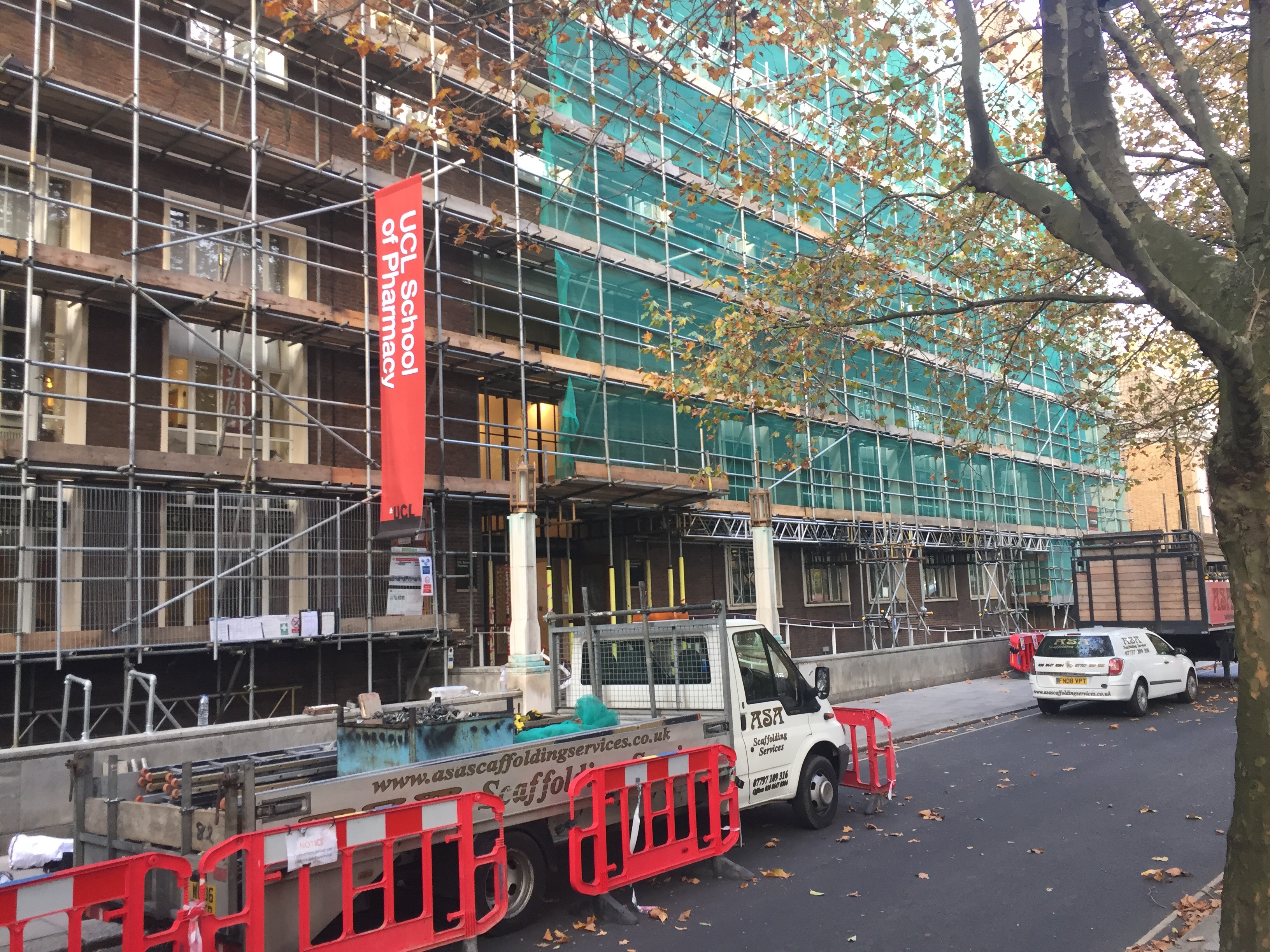 We also went to Russell Square and walked to the pharmacy school where we had had all our classes. The building had been updated inside and the exterior was covered with scaffolding as renovations continue. New bag checks and student scanners are now installed, and kept is from wandering in.