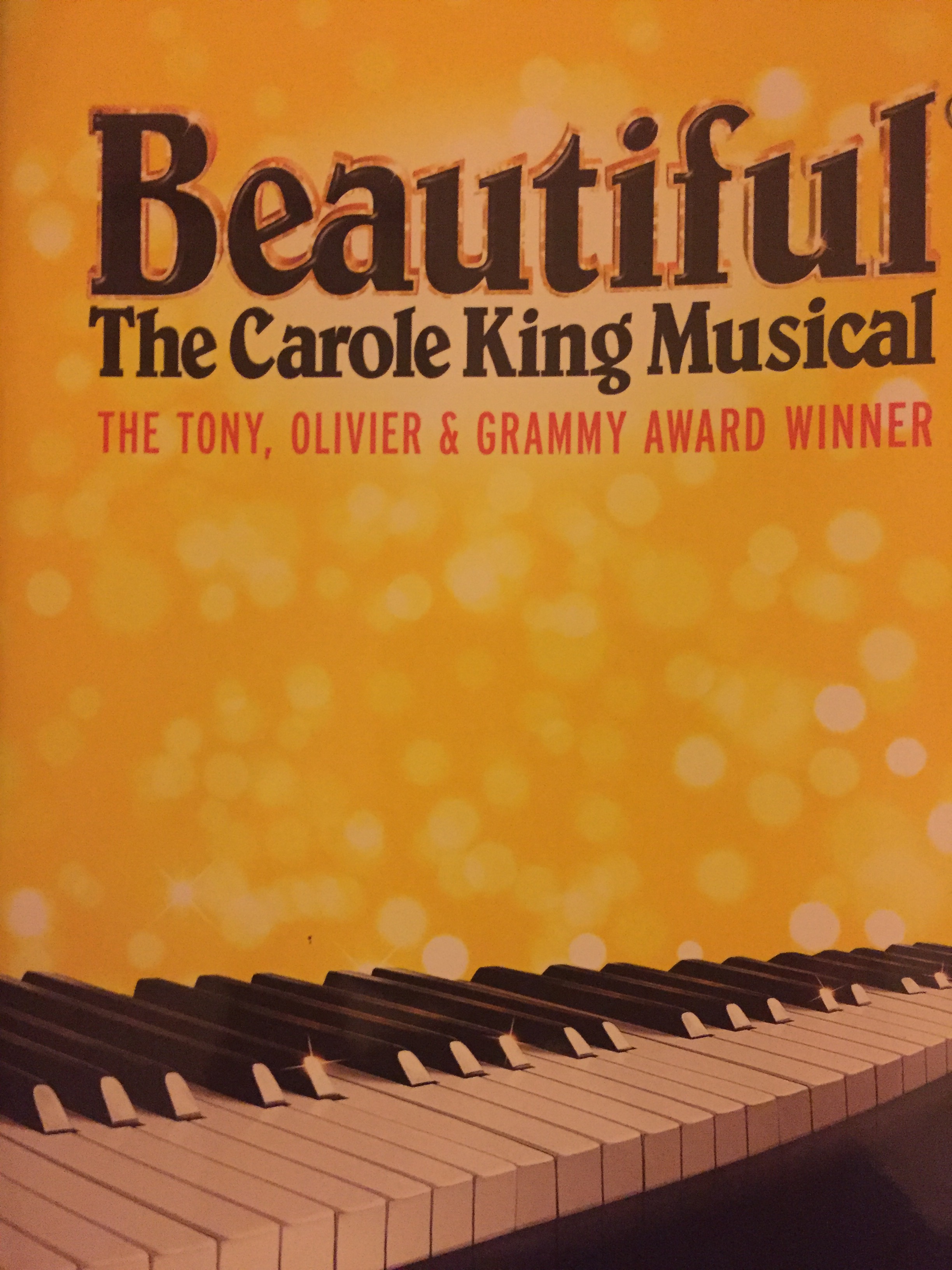 It was last November when I was in London visiting that I saw the play “Beautiful: the Carole King Musical” up on the Aldwych Theatre marquee, and thought then how much I’d like to see it when Karen and I came this fall.