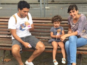 Had we remained in our seats, next we would have been riding back to Lezama. We got off and walked around the corner, finding the Tourist Office. We got maps and directions and learned how to use the tram that ran right in front of Pilpil hostel, where I was registered. Nannette and I split up, as she headed off to her hostel, and I to mine. En route I encountered this darling family: