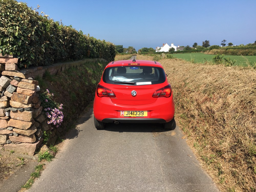 I mentioned to the woman helping us at the Avis counter that Pops is a Jerseyman and fluent in French, as was she, and with joy, they launched into a conversation in that heart language. She bid us “Au revoir!” and we launched onto the tiny Jersey lanes that joined to the main “highway.”