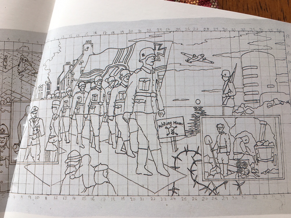 Imagine the close proximity of each of the women as they worked on those stitches! (Yes, only women did the stitchers according to the record. Many of them had survived the occupation.). They needed to face and walk through memories as they stitched the officers, the children, the stories of the occupation, the woman who hid her pig in her bed, the neighbor who turned in her friend.
