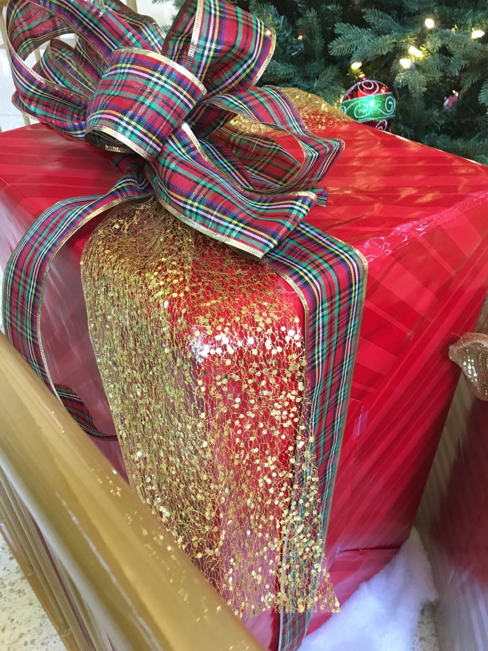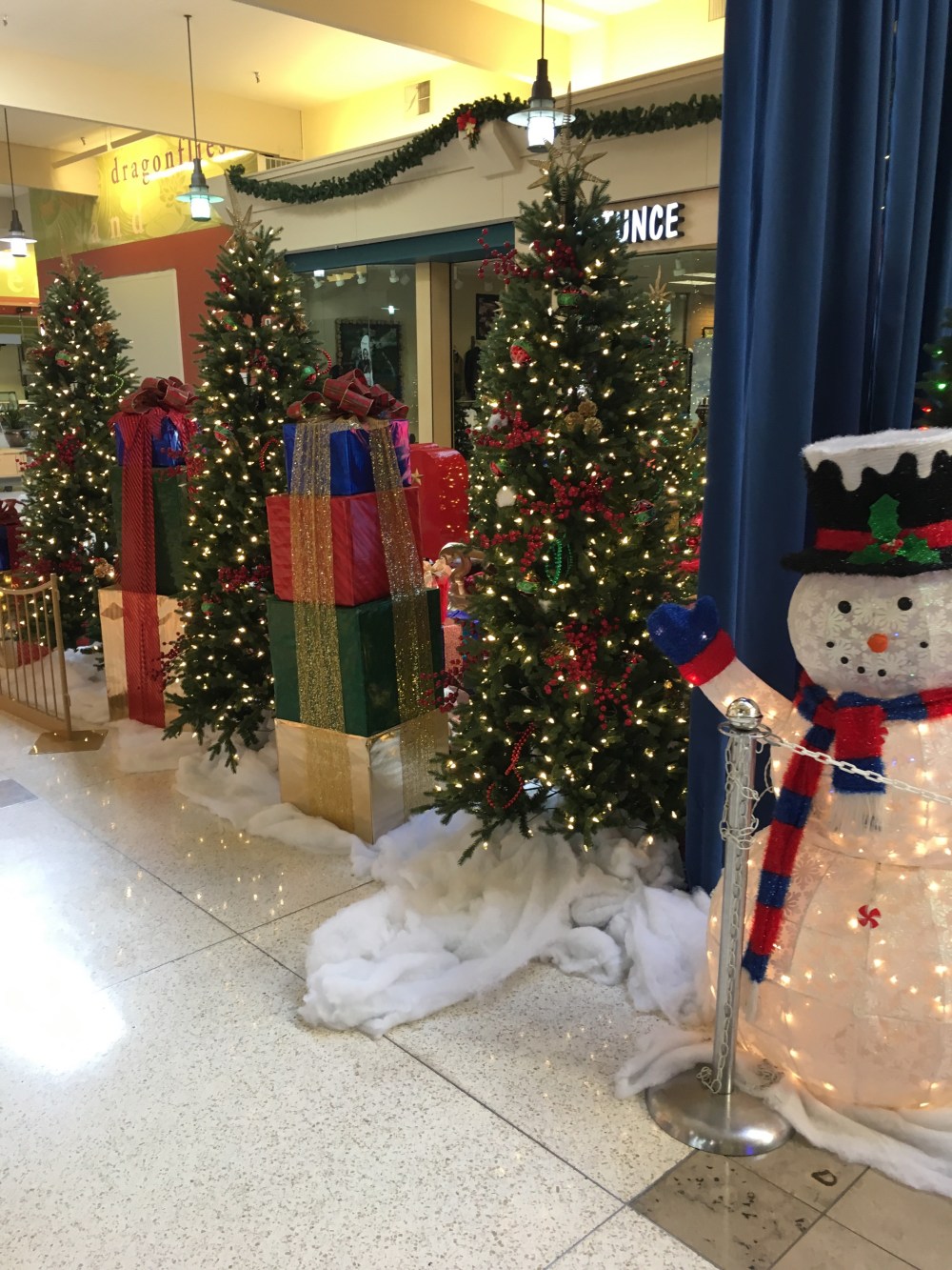 As we walked into the area, there were trees and a gate and men working inside the mall, setting up for Santa’s Village pictures.