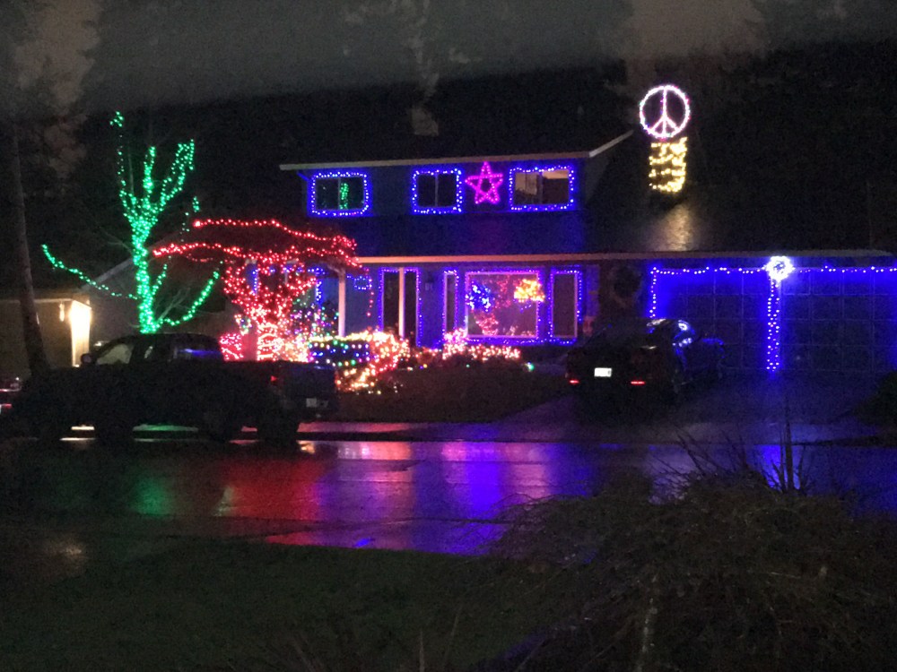 The thing that is interesting alongside this conversation, his distaste for anything that smacks of Christian faith, is this fact: This guy loves people, loves children, and wants them to have joy. He really goes all out with decoration at Halloween and even more so for Christmas.