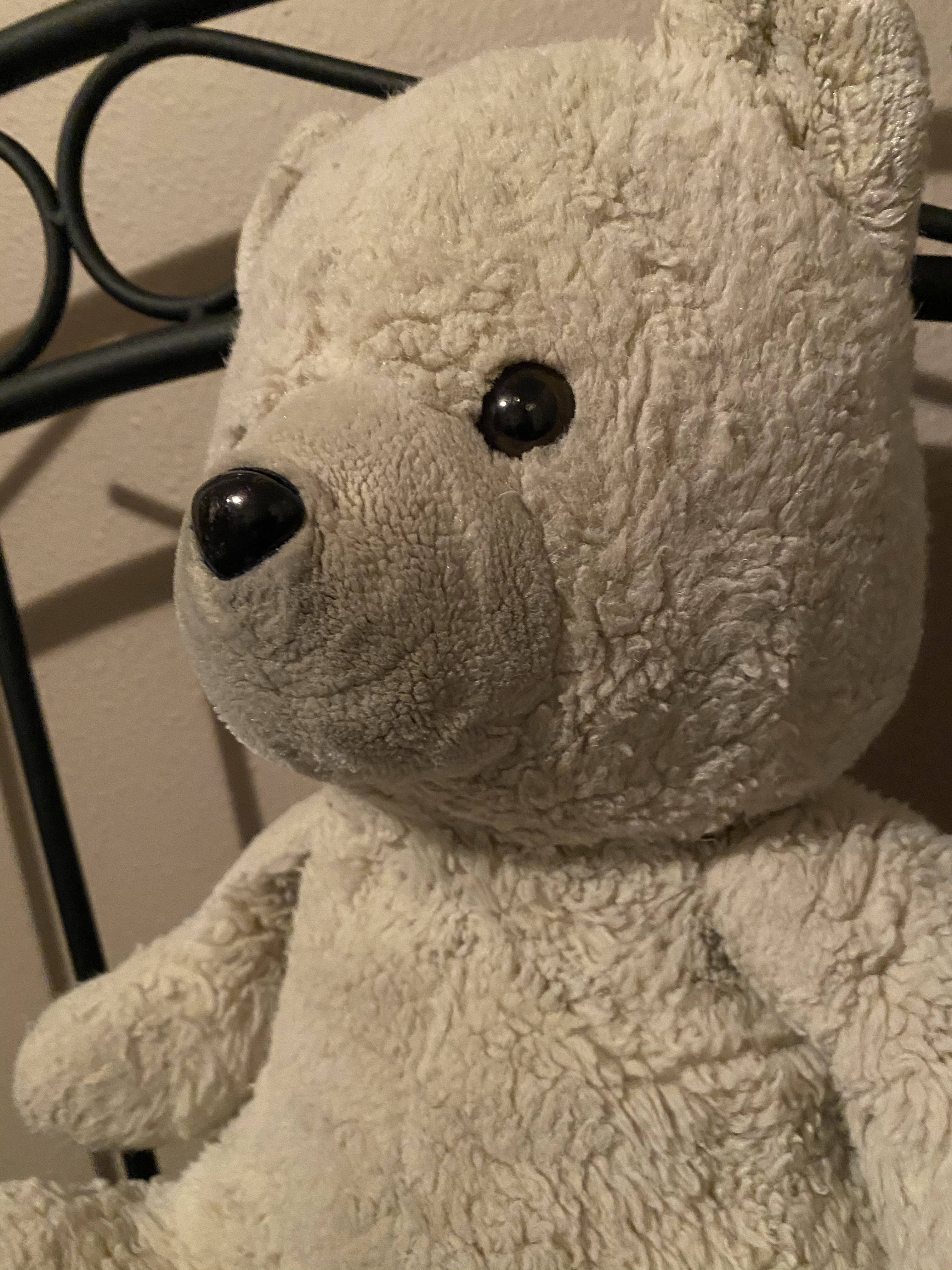 Tears had begun coursing down my cheeks. I opened the closet door, but it was filled with things. On the floor the Christmas creche wooden figurines covered in big plastic bags. Above me, all the coats, some hung in plastic covers, shelves filled with boxes of storage items. I closed the door. Then I turned and saw the bed was high enough for me to crawl under. I crawled under it and Skye came under after me and laid there on the floor. I didn’t have MC Bear so put my arms around him. He let me. And then I began to say my colors. My stomach hurt so much. The black was so dark. I didn’t like it.