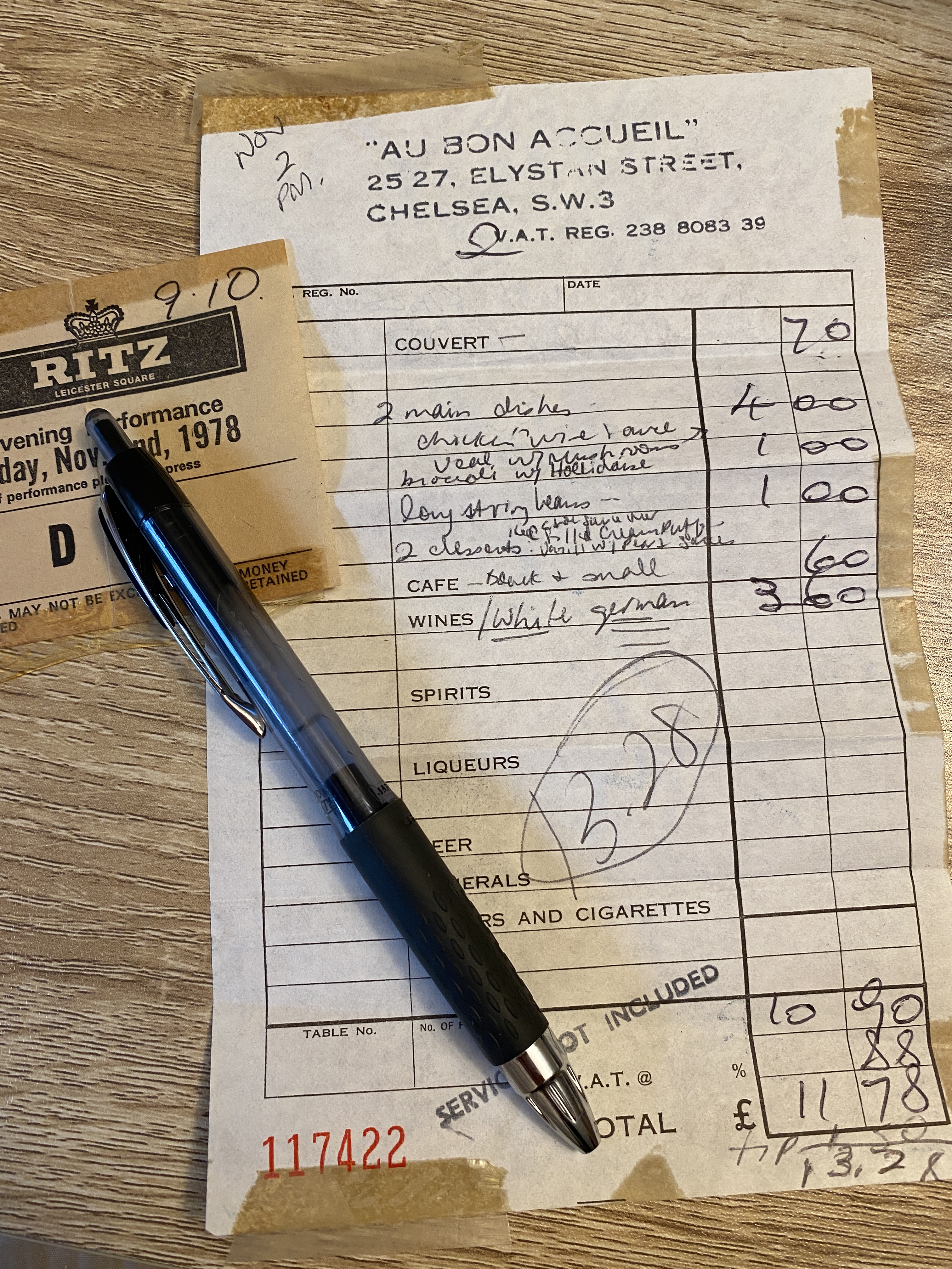 The next day, Patty, Paula, Karen and I met up in the afternoon at Harrod’s for High Cream Tea. I wrote, “We had a gay old time eating all the sweet things. I felt nearly sick from all the sugar! Raced home, changed and went out to dinner with friends from Muswell Hill.”