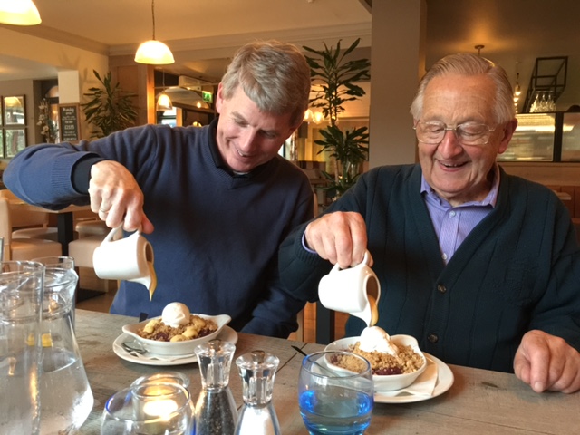 In 1998, our whole family, then six of us with our four daughters, took a vacation in Torquay to stay with David and reconnect with his daughter, Phil, son-in-law Hugh, and their two children Emma and Roger. David and Hugh met us at the airport in two cars and drove us the many-hour trip back to Torquay. After many days, I rented a car and traveled with my family for another week to various parts of England. David met us several times and became our local guide. During this visit, the kids started calling David “Pops,” the name his family called him.