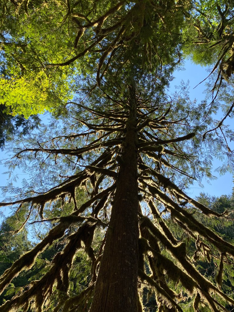 Our youngest daughter, Diana, was a swing addict and still is. She wore out 2 swing sets before I got serious, and built her one out of pressure treated 8×10″ beams. It will see me out and probably her too. My grandson, Rowan, loves to swing too. The swing sits underneath the branches of a 100+ year old fir tree I named Firby. Rowan loves it when I stop his swing in mid-flight so that he can look up into the canopy of limbs. He just gazes in wonder at its mystery and magnificence. Only God can make a tree and wow, He does good work!